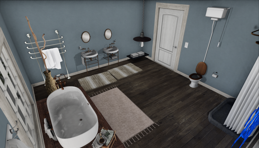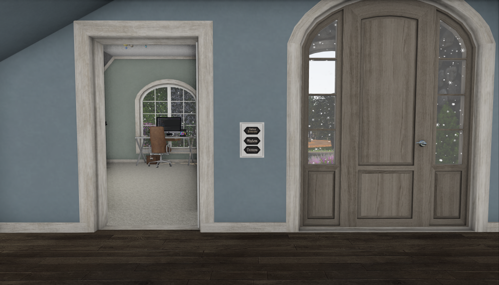 The same applies for the floors. You can choose from a wide variety of wooden floors and/or carpets. We, for example, have created the ground floor to consist of dark wooden floorboards – just as we have in RL. The bedroom, Cindy’s office we have situated on the ground floor also which have a cozy warm grey-tinted carpet which make those rooms a place you want to be in.
